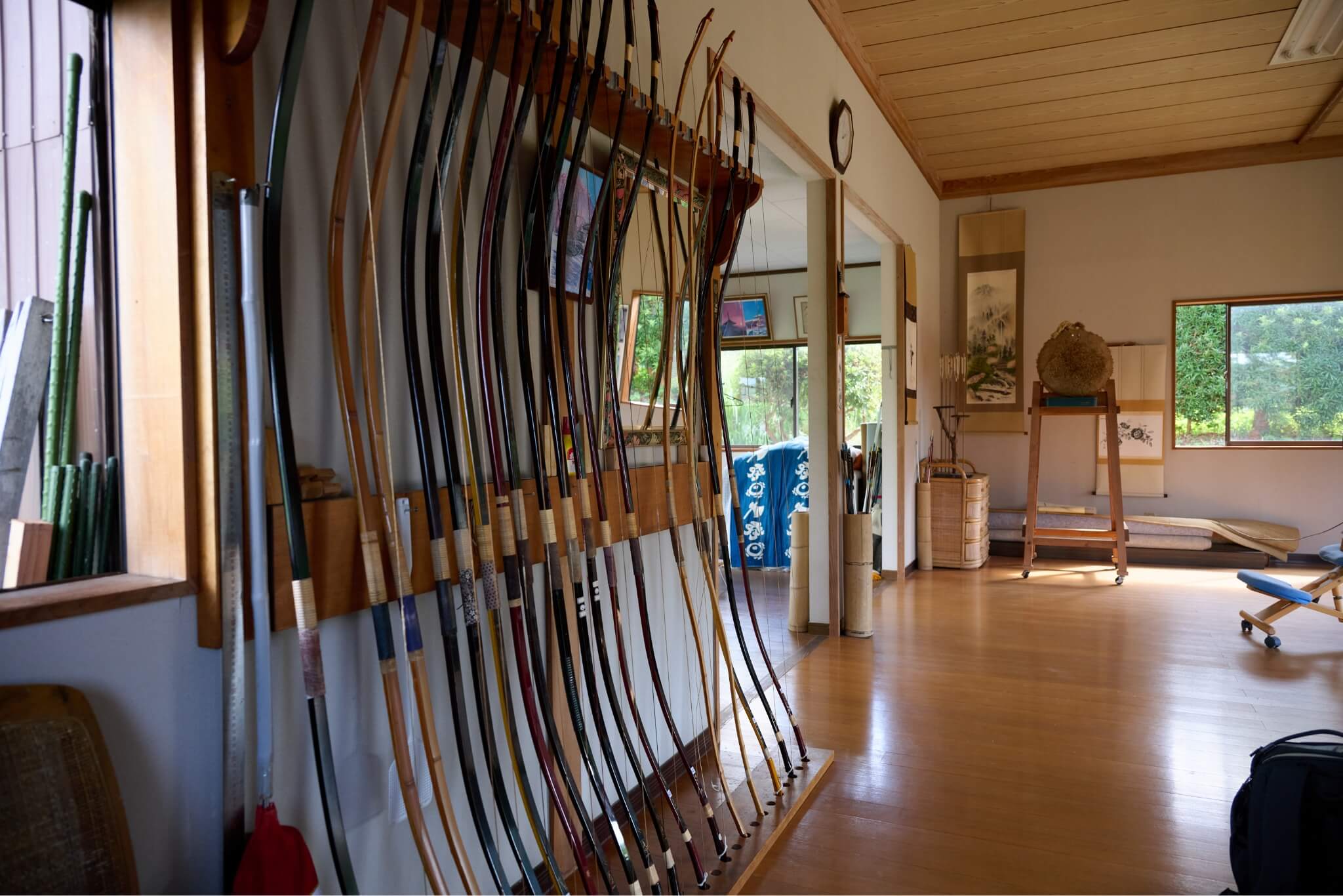 実は今回、上田さんの弓道場にお邪魔させていただいてます。先ほど弓道の体験もさせていただいたのですが、手が震えてしまい、狙いを定めるのが難しかったです……!