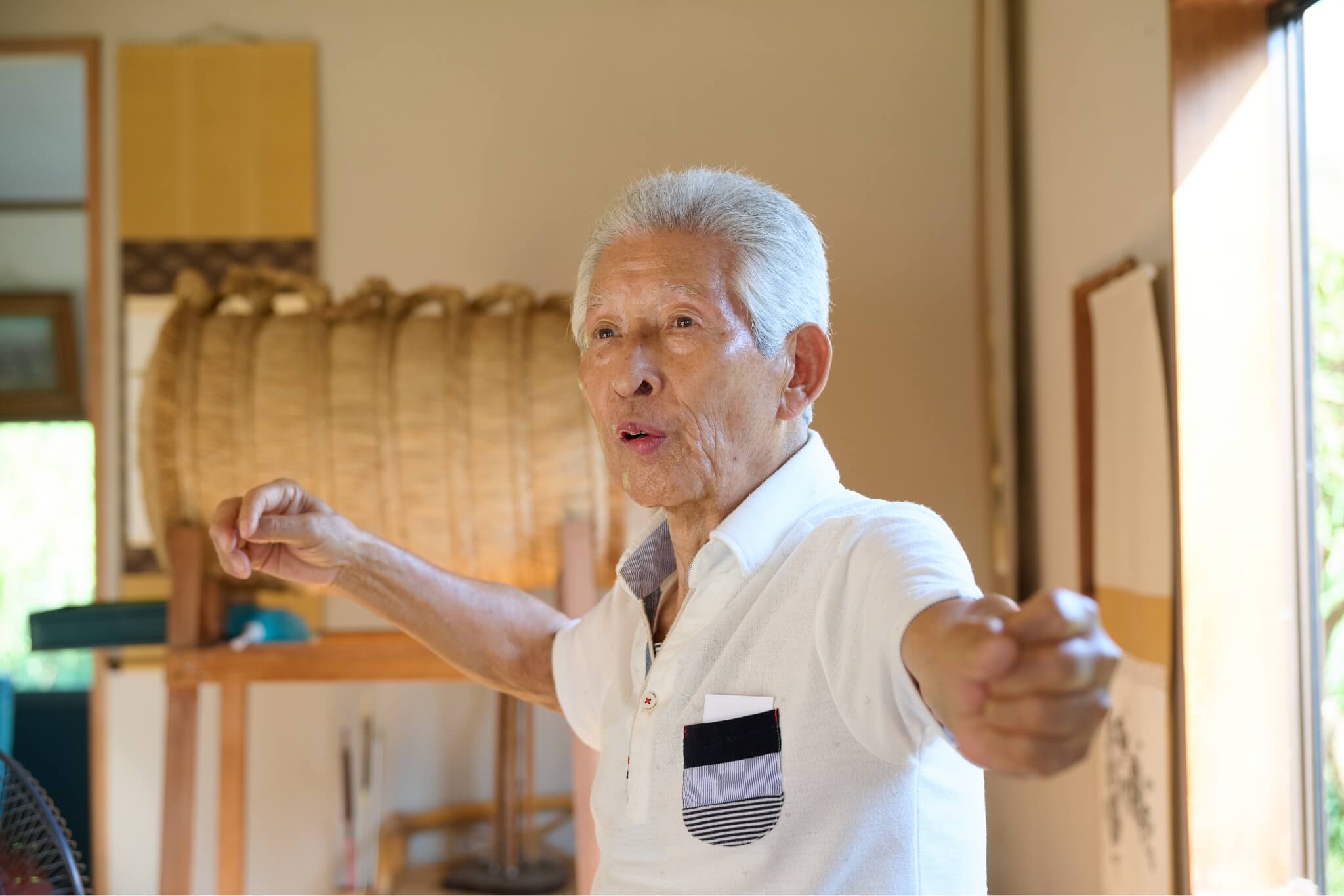 これは普段もそうですよ。健康のために腰を伸ばすのは大事なことです。そして空気の“気”を吸って、自分の人生でやりたいことや好きなことに気持ちを向けて生きていくのが、私の健康の秘訣です。